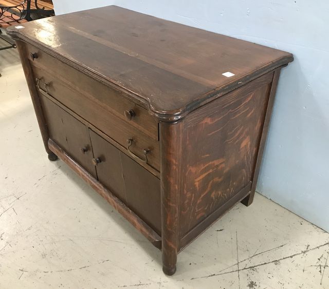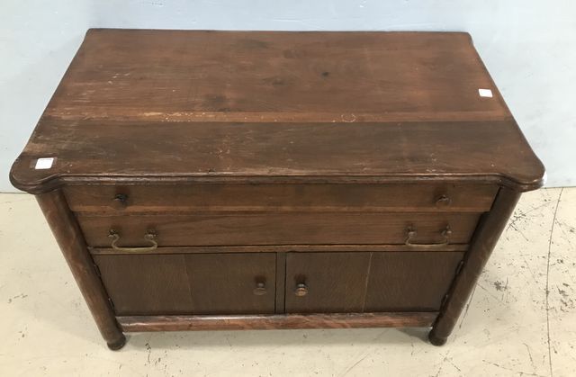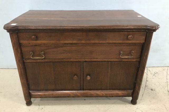 Continental Furniture Company Oak Chest , two drawers, double door storage, top has wear, 26"h, 38"w., 20"d. Continental Furniture Company Oak Chest , two drawers, double door storage, top has wear, 26"h, 38"w., 20"d.