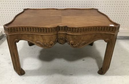 Heritage French Style Coffee Table, heavy, well made reproduction, turtle top design, good condition, 16"h., 30"w., 22"d. Heritage French Style Coffee Table, heavy, well made reproduction, turtle top design, good condition, 16"h., 30"w., 22"d.