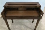 Modern Mahogany Writing Secretary Desk, lift top, single drawer, slide out writing shelf, removable legs, 33"h., 36"w., 18"d. Modern Mahogany Writing Secretary Desk, lift top, single drawer, slide out writing shelf, removable legs, 33"h., 36"w., 18"d.