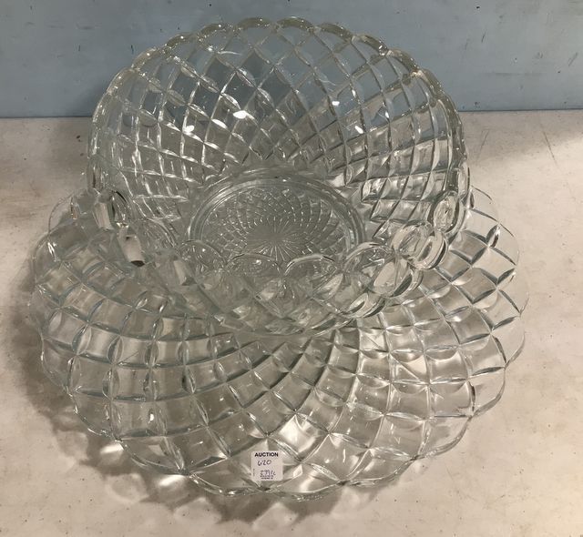 620 Vintage Diamond Pattern Glass Punch Bowl and Underplate