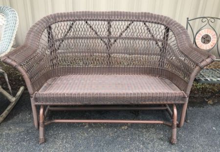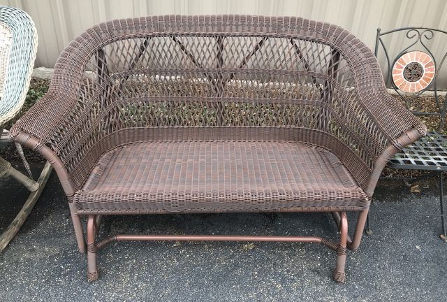 Outdoor Rattan Gliding Settee, modern, above average condition. Outdoor Rattan Gliding Settee, modern, above average condition.