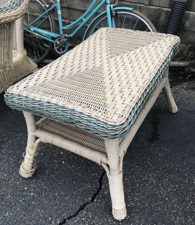 Multi Color Woven Wicker Side Table, two tier. Multi Color Woven Wicker Side Table, two tier.