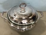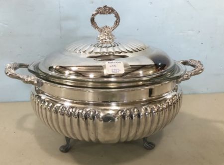 Sheridan's Chippendale Electric Serving Tray Silver Plate, footed, pyrex glass lining, covered with handled, 9"h., 14"w. Sheridan's Chippendale Electric Serving Tray Silver Plate, footed, pyrex glass lining, covered with handled, 9"h., 14"w.