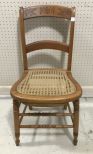 Vintage Cane Bottom Side Chair, carved designs on back rest, 35"h. Vintage Cane Bottom Side Chair, carved designs on back rest, 35"h.