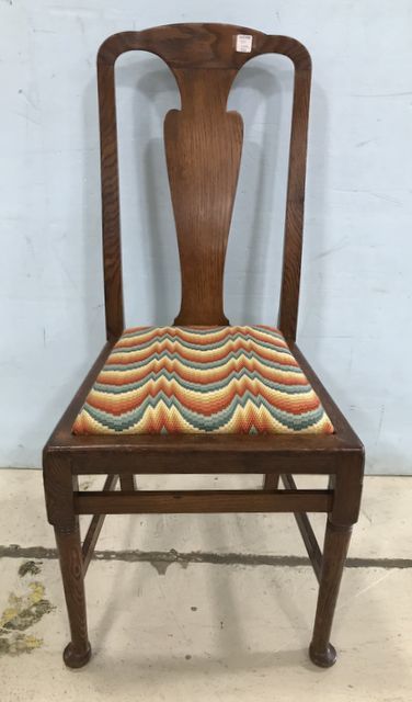Vintage Oak Queen Anne Side Chair, needle work seat, good condition, 39"h. Vintage Oak Queen Anne Side Chair, needle work seat, good condition, 39"h.
