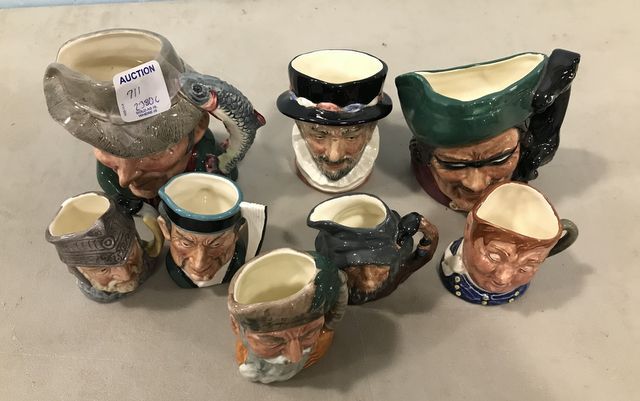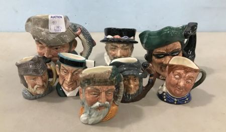 Royal Doulton Beefeater Mugs, made in England, miniature mugs, portrait, 8 total. Royal Doulton Beefeater Mugs, made in England, miniature mugs, portrait, 8 total.