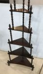 Painted Etagere Corner Display, 6 shelf, needs tightening, 61"h. Painted Etagere Corner Display, 6 shelf, needs tightening, 61"h.
