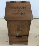 1980's Potatoes and Onions Hamper, carved designs, single drawer, hinged lift top, 24"h., 13"w. 1980's Potatoes and Onions Hamper, carved designs, single drawer, hinged lift top, 24"h., 13"w.