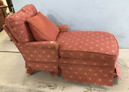 Pink Upholstered Chaise lounger, skirted, comes with pillow. Pink Upholstered Chaise lounger, skirted, comes with pillow.