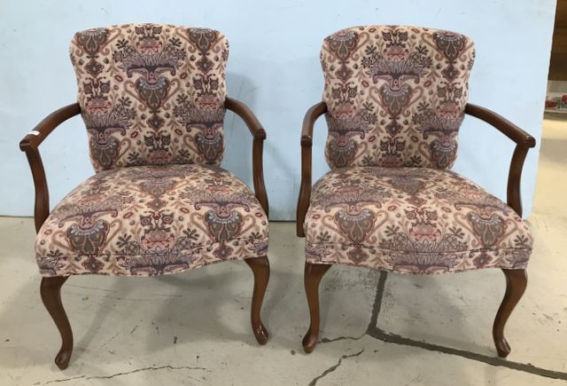 766 Pair of Upholstered Cherry Arm Chairs