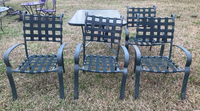 Modern Metal Striped Arm Chairs, four. Modern Metal Striped Arm Chairs, four.