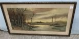 River landscape print, matted, framed, unsigned, 14"h., 26"w. River landscape print, matted, framed, unsigned, 14"h., 26"w.