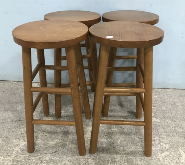 Four Modern Oak Bar Stool, 25"h. Four Modern Oak Bar Stool, 25"h.