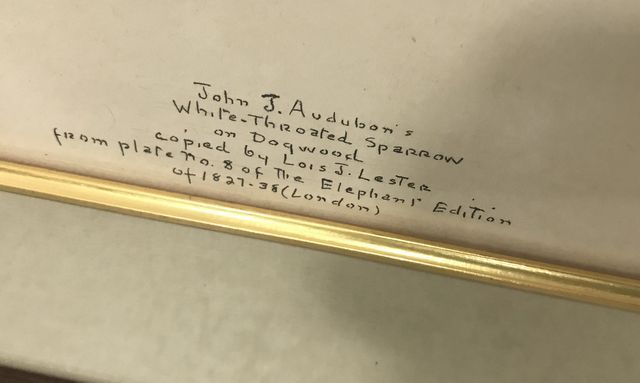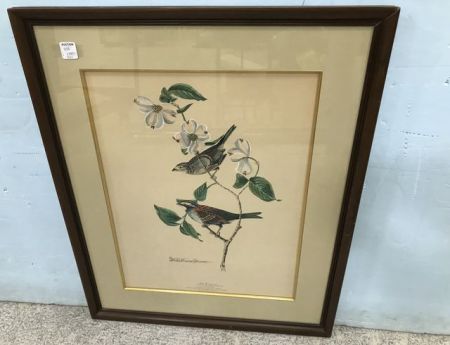 White Throated Sparrow by John J. Audubon's, on dogwood, plate no. 8, matted, framed, 27"h., 22"w. White Throated Sparrow by John J. Audubon's, on dogwood, plate no. 8, matted, framed, 27"h., 22"w.
