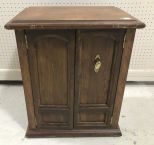 Vintage Small Double Door Commode, missing one pull, and inner shelf, has finish wear, 26"h., 22"w. Vintage Small Double Door Commode, missing one pull, and inner shelf, has finish wear, 26"h., 22"w.