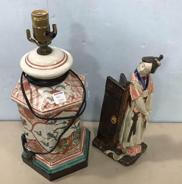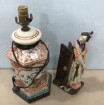 862 Modern Oriental Urn Lamp and Ceramic Asian Lady Figure