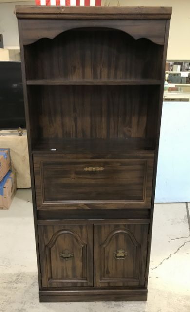 Pressed Wood Bookshelf Secretary, two display shelves, drop front desk, double door storage, 72"h., 30"w., 12"d. Pressed Wood Bookshelf Secretary, two display shelves, drop front desk, double door storage, 72"h., 30"w., 12"d.