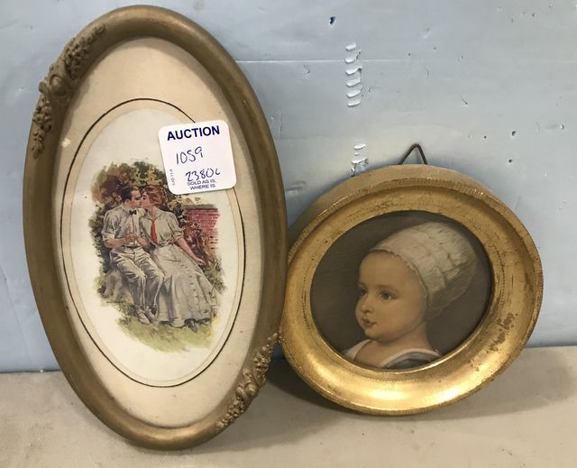 Oval small Man and woman print, Van Dyck Baby Stuart 4 1/2". Oval small Man and woman print, Van Dyck Baby Stuart 4 1/2".