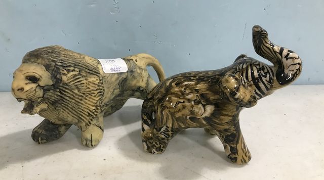 1099 Leather Lion and Pottery Elephant
