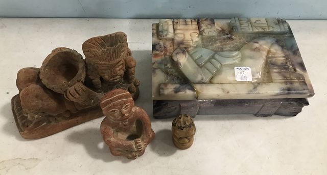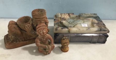 Tribal lift top trinket box (crack on top(, terra cotta figurines, tribal face. Tribal lift top trinket box (crack on top(, terra cotta figurines, tribal face.