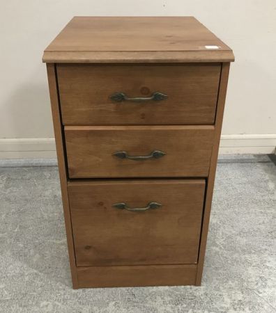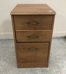 Modern Wood Three Drawer File Cabinet, two storage drawers, one file drawer, good condition, 28"h., 16"w., 20"d. Modern Wood Three Drawer File Cabinet, two storage drawers, one file drawer, good condition, 28"h., 16"w., 20"d.
