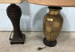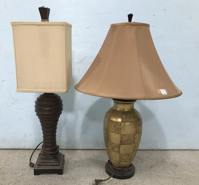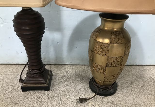 Spiral wood table lamp, gold gilt ceramic vase table lamp. Spiral wood table lamp, gold gilt ceramic vase table lamp.