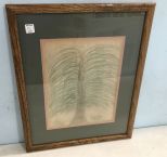 Pencil drawing tree signed Cowan, matted, framed 22"h., 18"w. Pencil drawing tree signed Cowan, matted, framed 22"h., 18"w.