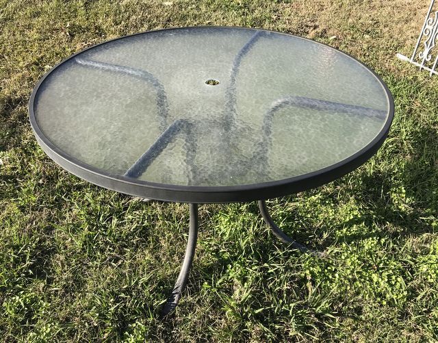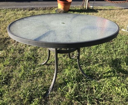 Modern Outdoor Round Table, umbrella slot, weather wear, large size. Modern Outdoor Round Table, umbrella slot, weather wear, large size.