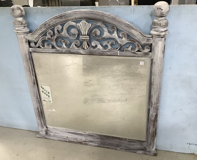 Modern ornate painted dresser mirror, 49"h., 45"w. Modern ornate painted dresser mirror, 49"h., 45"w.