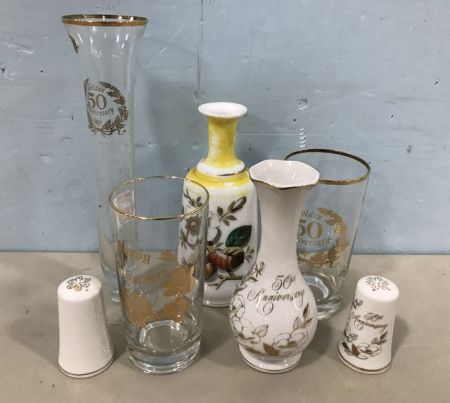 1179 Golden 50 Anniversary Glass and Porcelain Vases