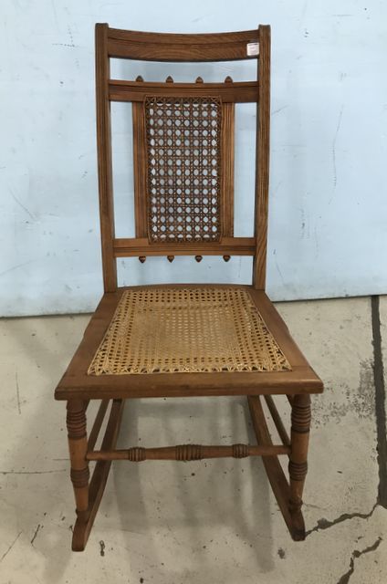 1204 Vintage Cane Oak Sewing Rocking Chair