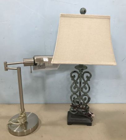 Ornate Resin Metal Style Lamp and Stainless Metal Desk Lamp. Ornate Resin Metal Style Lamp and Stainless Metal Desk Lamp.