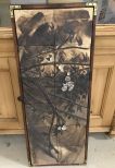 Framed painted tile, tree floral design, wood framed, wall art, 15"h., 39"w. Framed painted tile, tree floral design, wood framed, wall art, 15"h., 39"w.