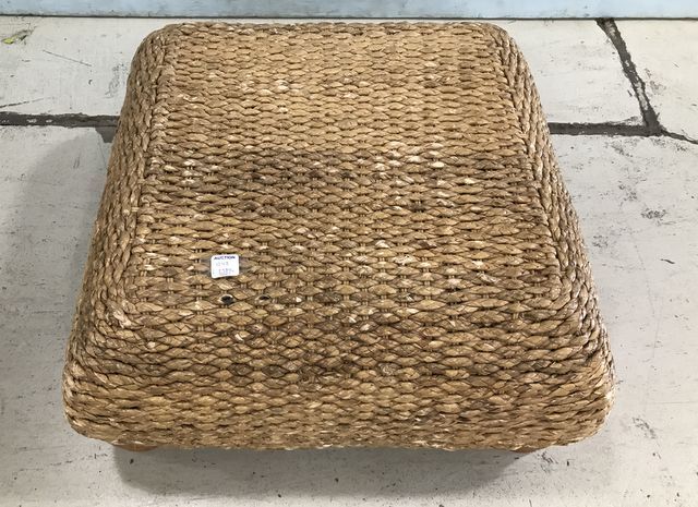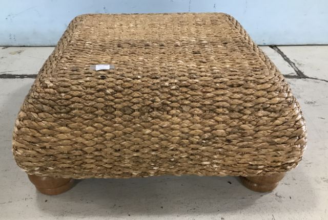 Modern Woven Foot Stool, wood feet, 9"h., 21"w. Modern Woven Foot Stool, wood feet, 9"h., 21"w.