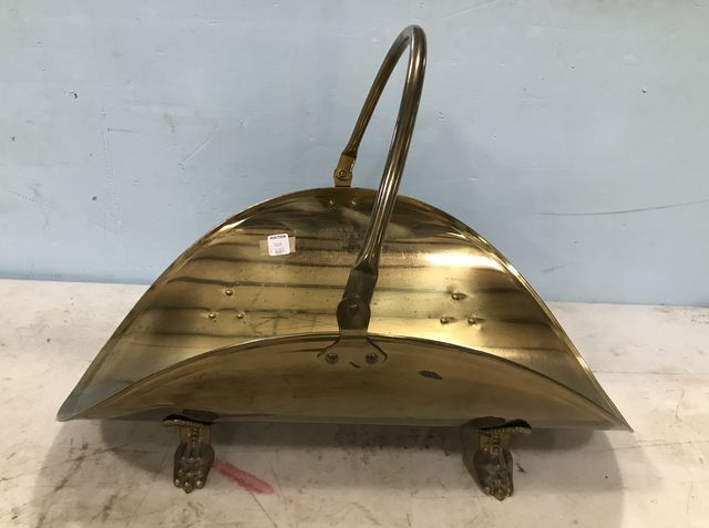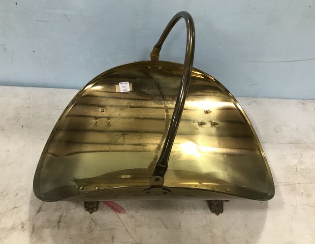 Brass Claw Footed Kindling Holder, handle, 8"h., 21"w. Brass Claw Footed Kindling Holder, handle, 8"h., 21"w.