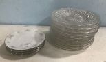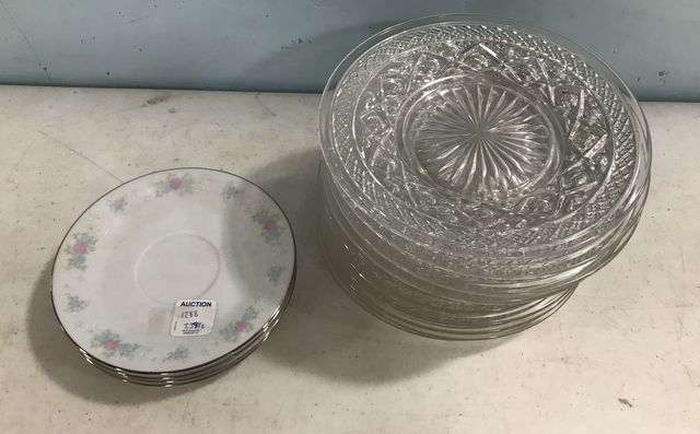 China Garden Prestige Saucers and Pressed Glass Plates, 15 total pieces. China Garden Prestige Saucers and Pressed Glass Plates, 15 total pieces.