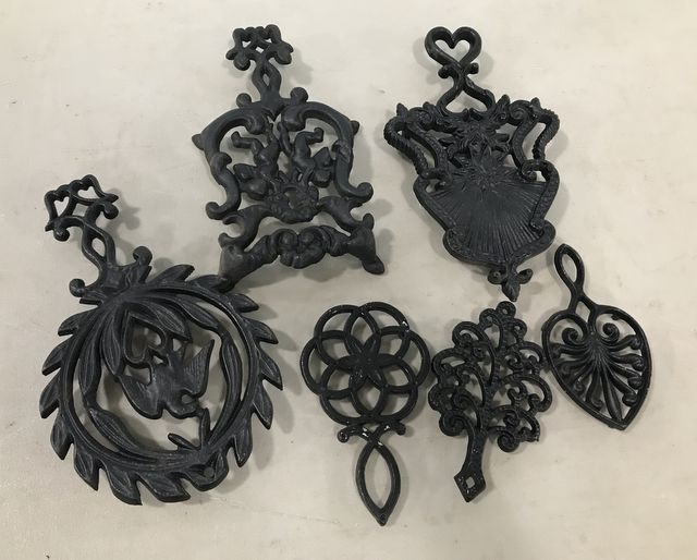 Reproduction black painted metal trivets. Reproduction black painted metal trivets.