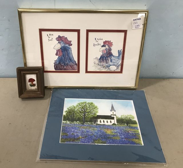 1303 I Rule the Roost Print, Ruth Jank Print, and Small Mushroom Painting