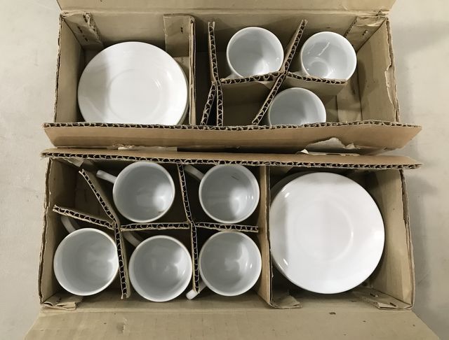 White Demi Tasse Cups (8) and Saucers (8). White Demi Tasse Cups (8) and Saucers (8).