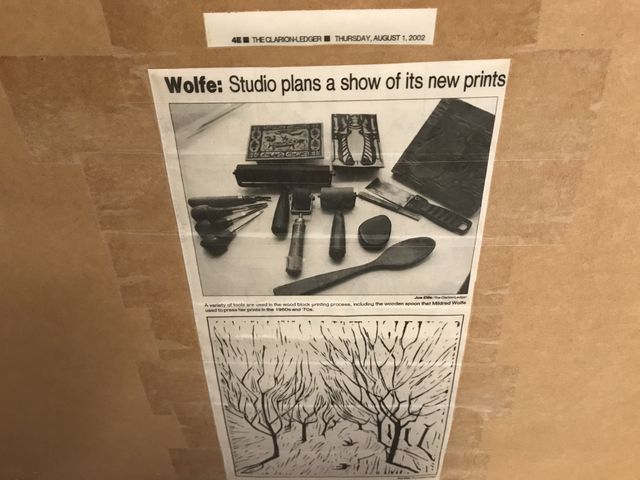"Orhard" framed 20"h., 20"w, signed Mildred Nungester Wolfe, Linocut is a printmaking technique. August 23, 1912 – February 11, 2009, was an American artist based out of Jackson, Mississippi, spouse was Karl Wolfe. "Orhard" framed 20"h., 20"w, signed Mildred Nungester Wolfe, Linocut is a printmaking technique. August 23, 1912 – February 11, 2009, was an American artist based out of Jackson, Mississippi, spouse was Karl Wolfe.