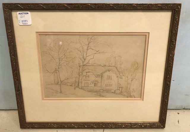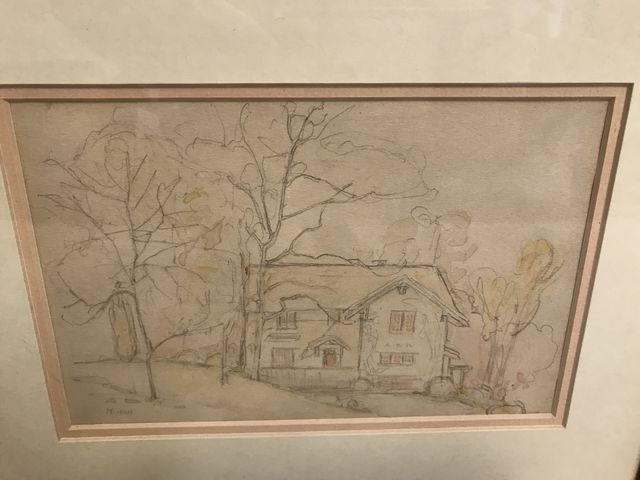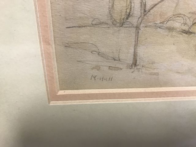 Pencil drawing and watercolor landscape on paper, 1890-1990, born in Summitt, MS, she taught art to many well known artists such as Andrew Bucci, she lived in Belhaven, framed 11"h., 13"w. Pencil drawing and watercolor landscape on paper, 1890-1990, born in Summitt, MS, she taught art to many well known artists such as Andrew Bucci, she lived in Belhaven, framed 11"h., 13"w.