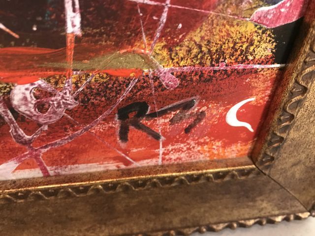 Painting of board, framed 26" x 32", signed RM. Professional fine artist for the past 20 years, studied art at Belhaven University, Fondren Art Gallery. Painting of board, framed 26" x 32", signed RM. Professional fine artist for the past 20 years, studied art at Belhaven University, Fondren Art Gallery.