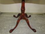 Vintage claw foot, ornate carved trim work and border trim, not a tilt top, four leg pedestal, 29"h., 30"dia. Vintage claw foot, ornate carved trim work and border trim, not a tilt top, four leg pedestal, 29"h., 30"dia.