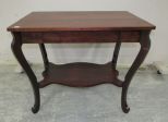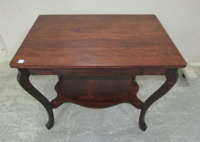 Vintage mahogany two tier library table, one drawer, 30"h., 36"w., 24"d. Vintage mahogany two tier library table, one drawer, 30"h., 36"w., 24"d.