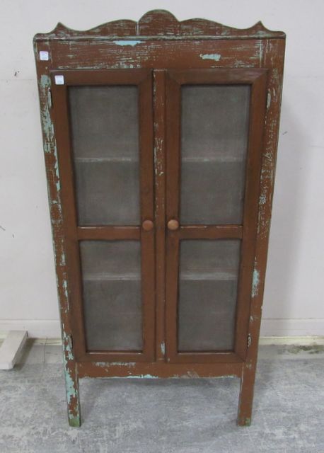 Vintage double door mesh panel pie safe, two shelves, 63"h., 30"w., 16"d. Vintage double door mesh panel pie safe, two shelves, 63"h., 30"w., 16"d.