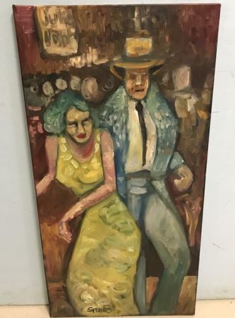 Oil painting on canvas 36"h., 18"w., signed Speaks, Cliff Speaks paintings are rich integrations of traditions such as the Mexican Muralists, Abstract Expressionism, Fauvism, Cubism and Pop Art. Mississippi Artist. Oil painting on canvas 36"h., 18"w., signed Speaks, Cliff Speaks paintings are rich integrations of traditions such as the Mexican Muralists, Abstract Expressionism, Fauvism, Cubism and Pop Art. Mississippi Artist.