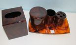 Lacquer with Tourtise style tray, cup, toothbrush holder, container, klennex cover, 11"w., 7"d. Lacquer with Tourtise style tray, cup, toothbrush holder, container, klennex cover, 11"w., 7"d.