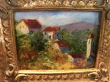 Landscape miniature IV, oil painting on board, signed Gayle Reaves, gold gilt frame 8"h., 7"w. Mississippi Artist. Landscape miniature IV, oil painting on board, signed Gayle Reaves, gold gilt frame 8"h., 7"w. Mississippi Artist.