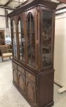 Broyhill lighted china cabinet, two pieces, glass panels and doors, glass shelving, 80"h., 54"w., 17"d. Broyhill lighted china cabinet, two pieces, glass panels and doors, glass shelving, 80"h., 54"w., 17"d.