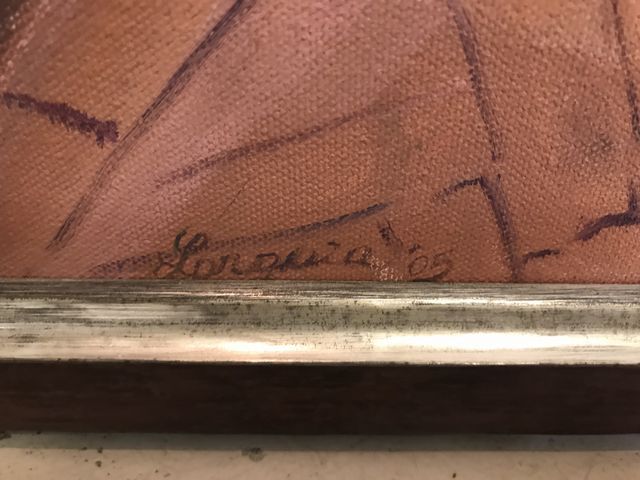 Oil painting of courtyard on canvas signed Lorseria '05, framed 22"h., 18"w. Oil painting of courtyard on canvas signed Lorseria '05, framed 22"h., 18"w.